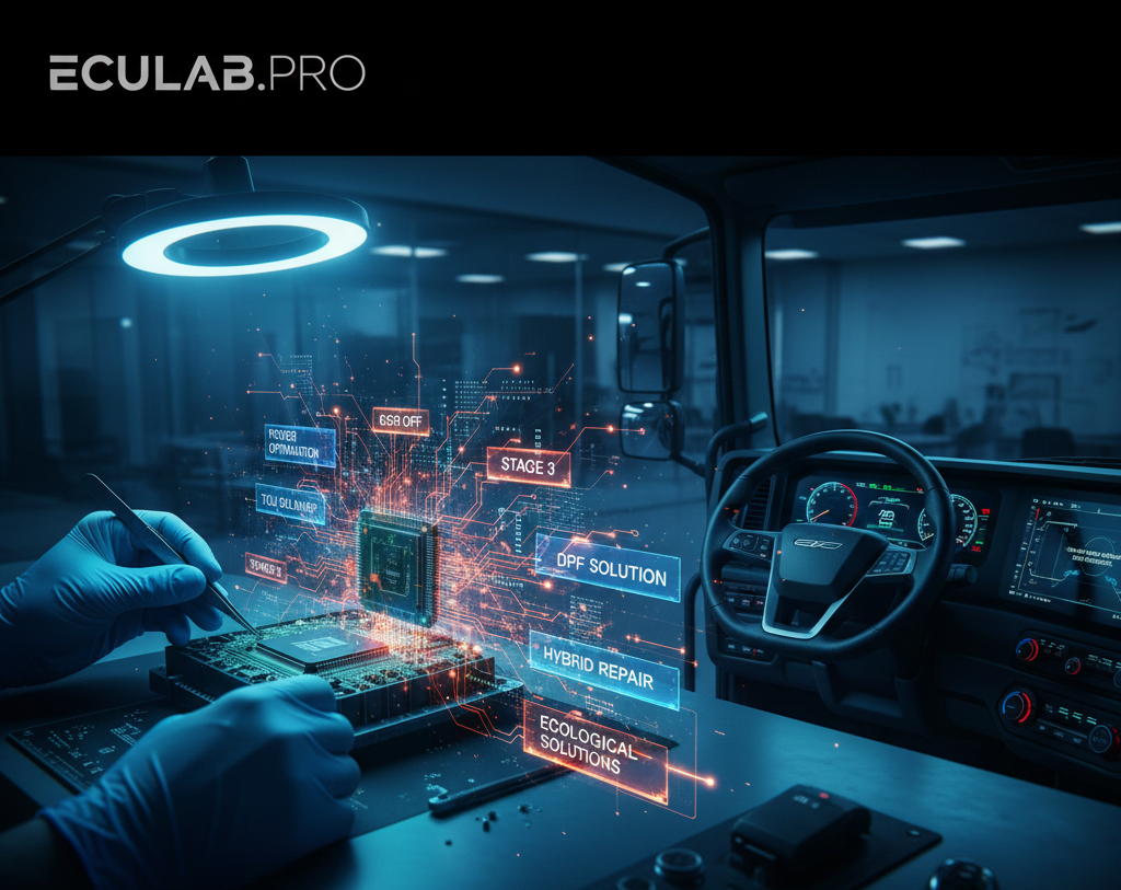 Пълно софтуерно премахване на AdBlue системата (SCR). Край на ограниченията по мощност, аварийните режими и необходимостта от постоянно зареждане с урея. Идеално решение за тежкотоварна техника.